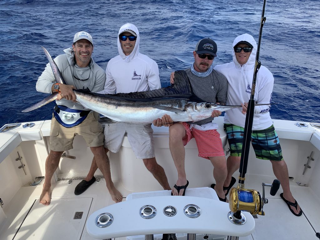 The sailfish bite turns on and off as they pass through but we’ve been getting 1 to 3 sailfish bites on most days. They’ve been scattered about and we’ve caught them everywhere from 80 feet of water on out to 600 feet of water while hunting down a dolphin bite.