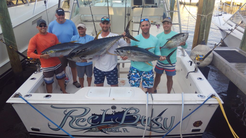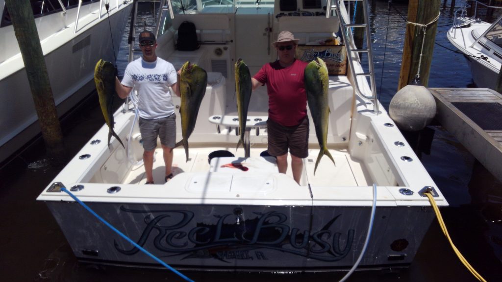 Hello Fish Fans and welcome aboard the REEL BUSY. The easterly breezes we’re getting will keep pushing more Mahi Mahi into the waters off the coast of Stuart Florida. The weed lines are beginning to come together and we’ve had some good Mahi fishing this week. A few days ago it was a mostly small Mahi of 3 to 5 pounds. Yesterday we caught eight Mahi and three of the bulls were 20 to 26 pounds. The slammers of 15 to 30 pounds are finally starting to show up. May looks to be an excellent month of Mahi fishing off the coast of Stuart Florida.